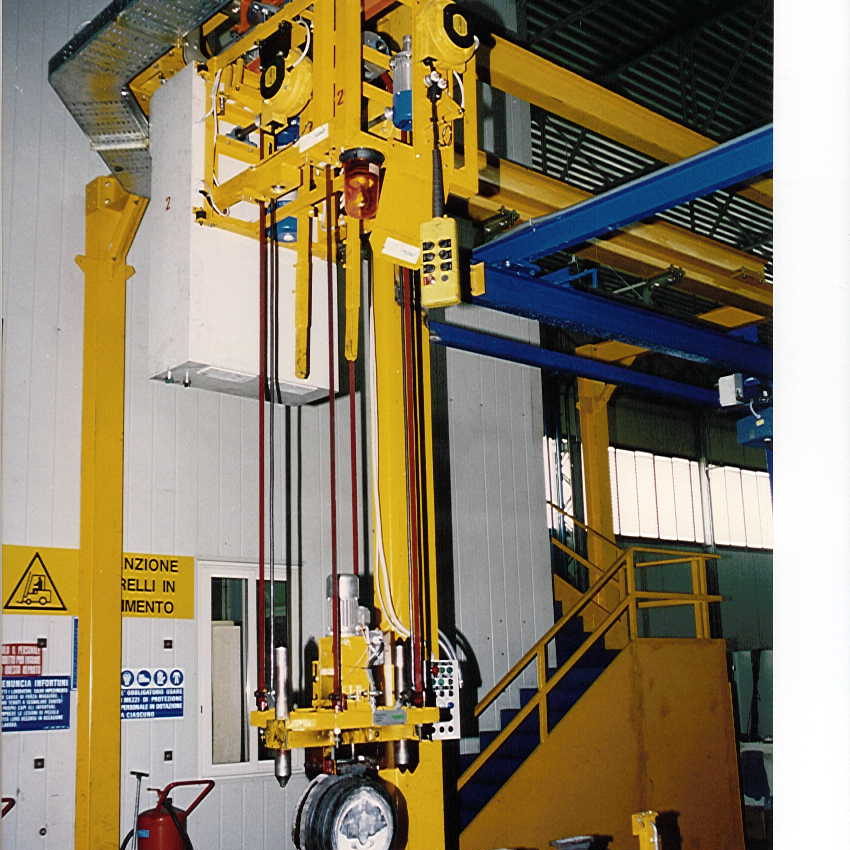 – Stacker cranes to manage the gripping and positioning of the wings in different areas suitable to allow the assembly. Special machines provided with telescopic units on board for capacities up to 5.500 kg.