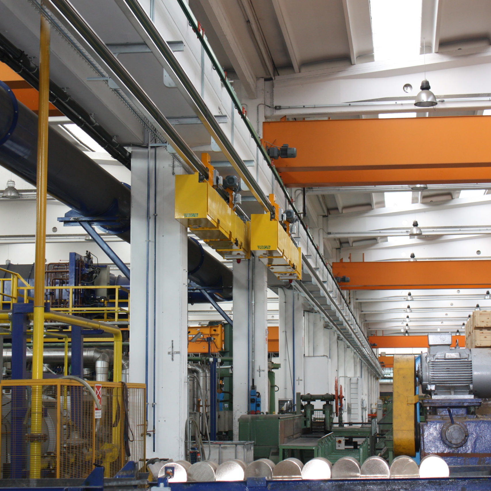 – melted aluminum from smelter to holding furnaces for pressure casting. The trolleys convey dies from the preparation stage to a small storage. Afterwards, they slot them into pre-heating furnaces and after into the press;