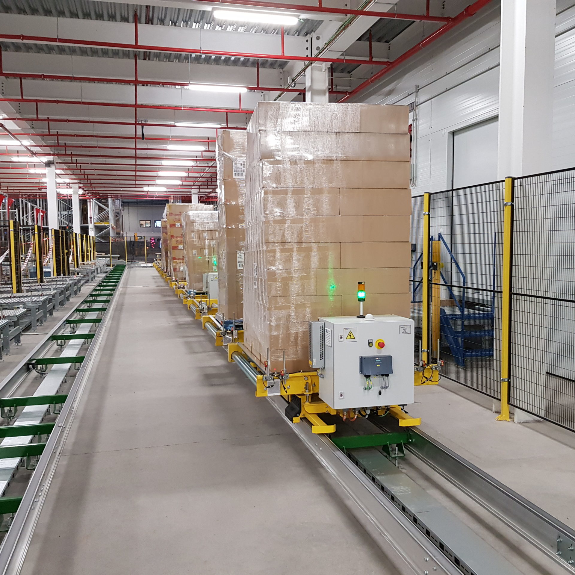 from the production and the reception of goods to the warehouses, from and to the picking area. Furthermore, the RGV allows to orderly prepare the pallets for the loading and the dispatch bays.